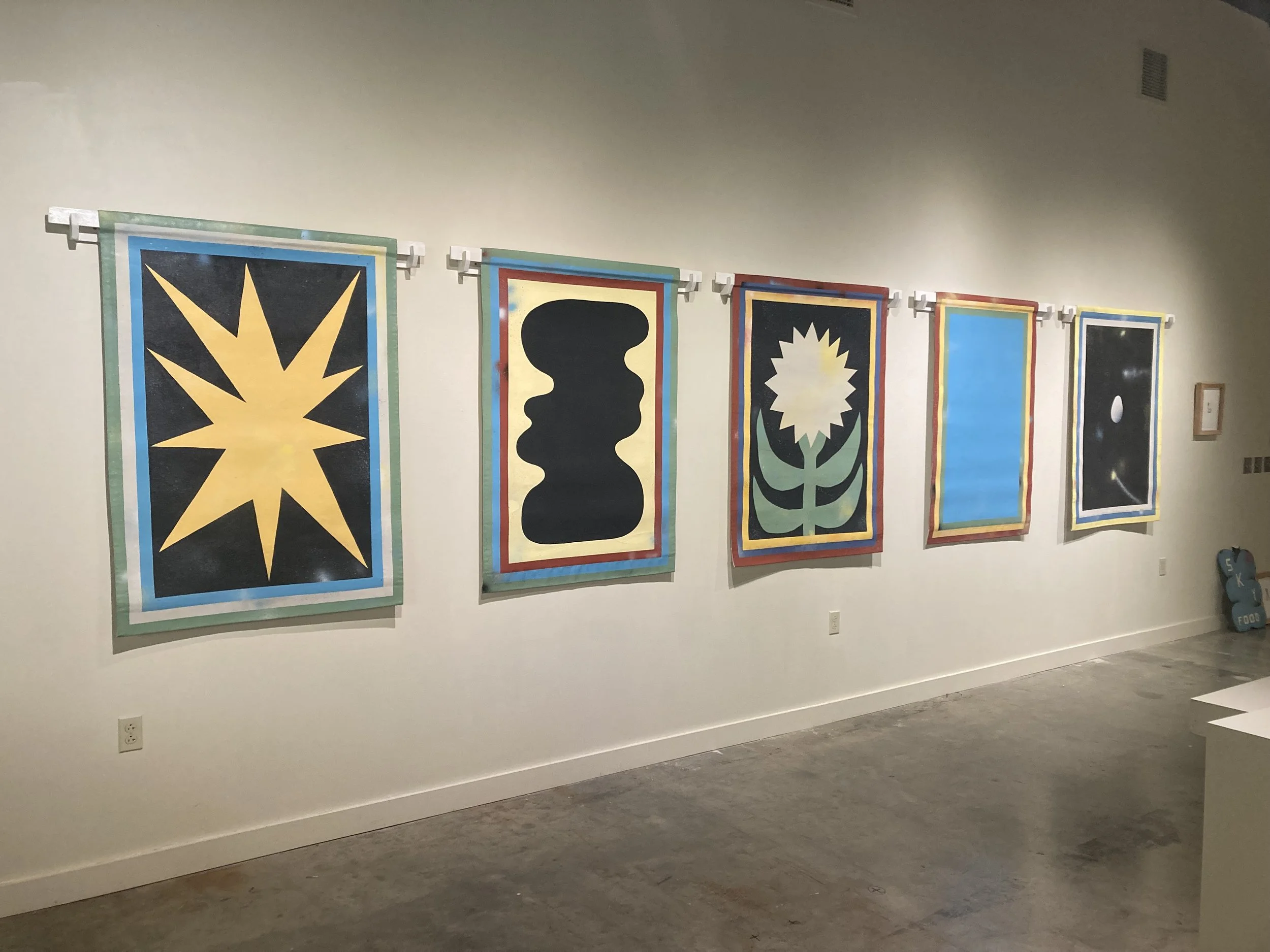 I remember these: The Magic Blankets. I love these guys. I remember making the wood hanger things in my garage. They were exhibited originally over COVID times so I never got to see them up on a wall together. They are still Magic Blankets but they are also now flags to carry and hang.